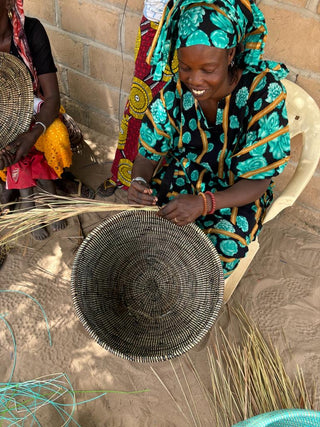 Lafali Körbe sind in liebevoller Handarbeit geflochtene Körbe aus dem Senegal, die aus natürlichen Materialien, dem Savannengras und recyceltem Kunststoff gefertigt werden. Dank der robusten Materialien und der sorgfältigen Verarbeitung sind sie sehr langlebig und widerstandsfähig. Die Besonderheit unserer Körbe ist die stilvolle Umrandung des Korbdeckels und der Griffe mit Kunstleder. Sie verleiht den afrikanischen Körben nicht nur ein elegantes Aussehen, sondern erhöht auch ihre Haltbarkeit und Festigkeit. Jeder Korb ist einzigartig und zeigt die Kreativität und Handwerkskunst der Korbhersteller*innen.