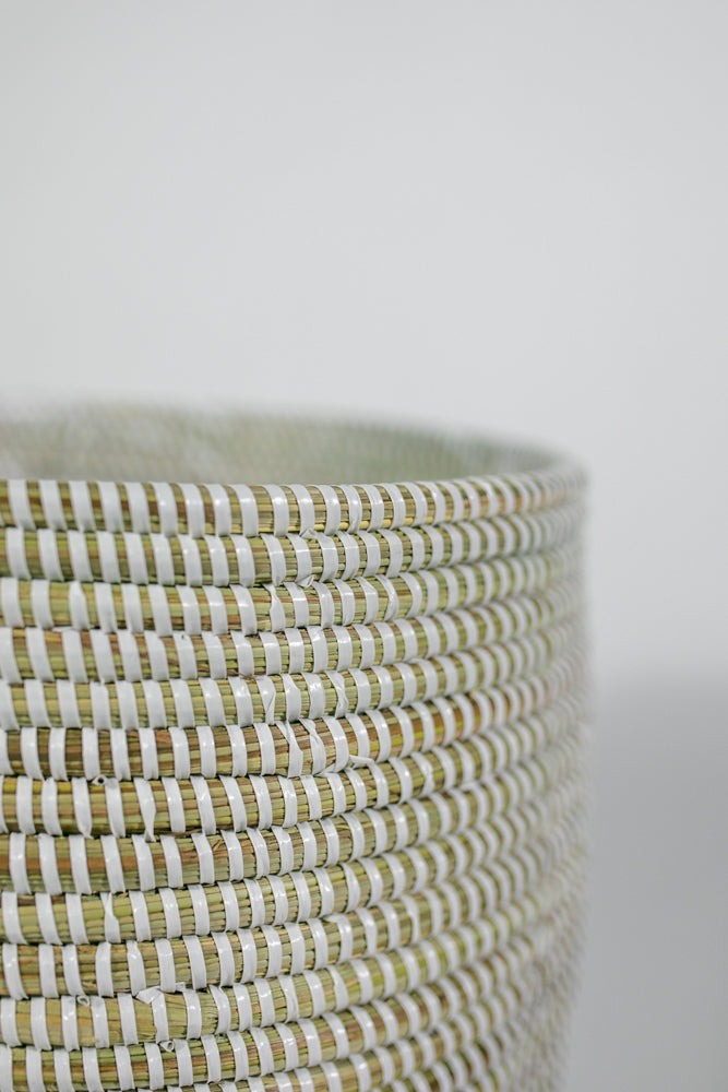 Lafali Körbe sind in liebevoller Handarbeit geflochtene Körbe aus dem Senegal, die aus natürlichen Materialien, dem Savannengras und recyceltem Kunststoff gefertigt werden. Dank der robusten Materialien und der sorgfältigen Verarbeitung sind sie sehr langlebig und widerstandsfähig. Jeder Korb ist einzigartig und zeigt die Kreativität und Handwerkskunst der Korbhersteller*innen.